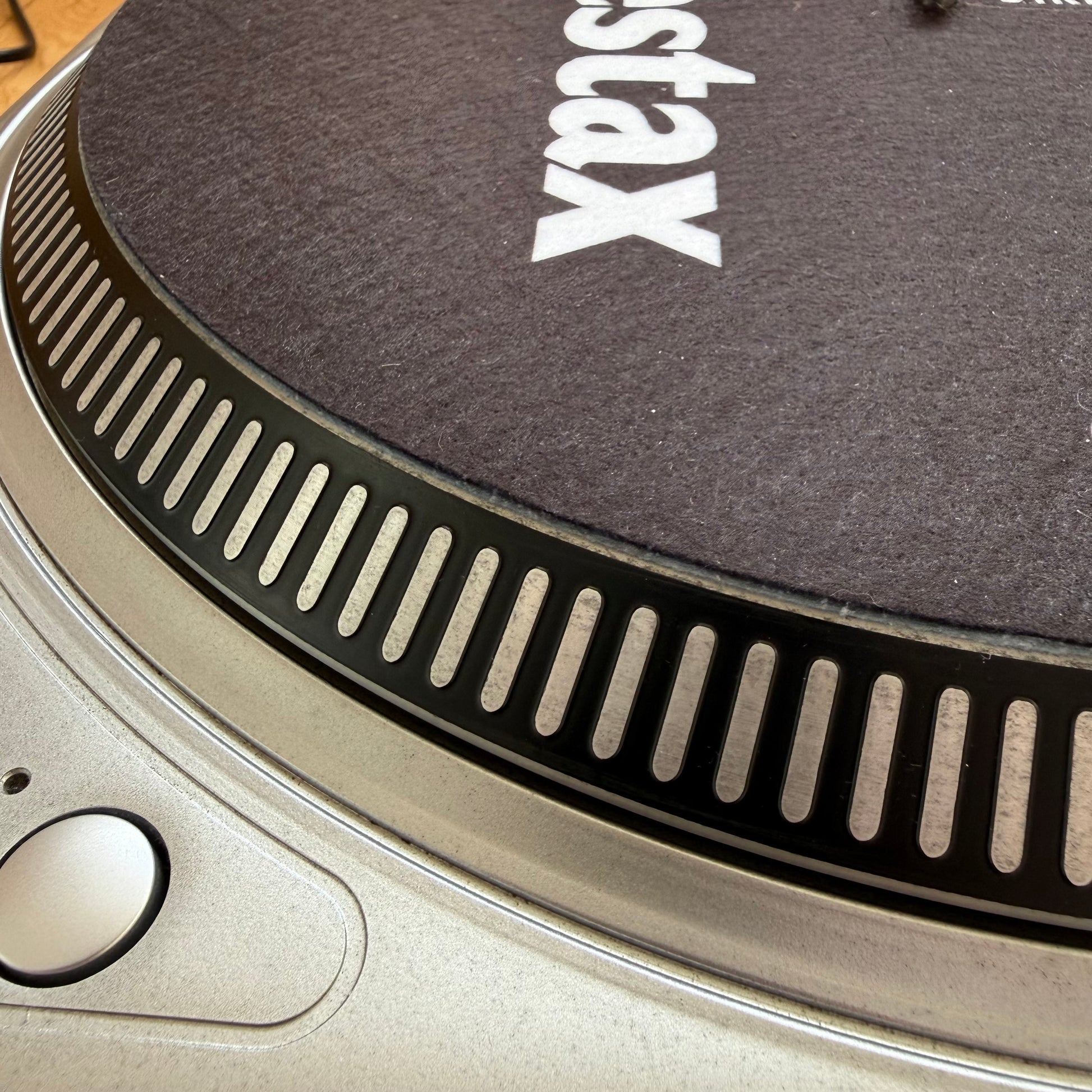 This unit is in great condition, with no major scratches on the turntable, some minor mottling near the power switch but not major. It comes complete with an original Vestax headshell, reproduction slipmat and ground cable.