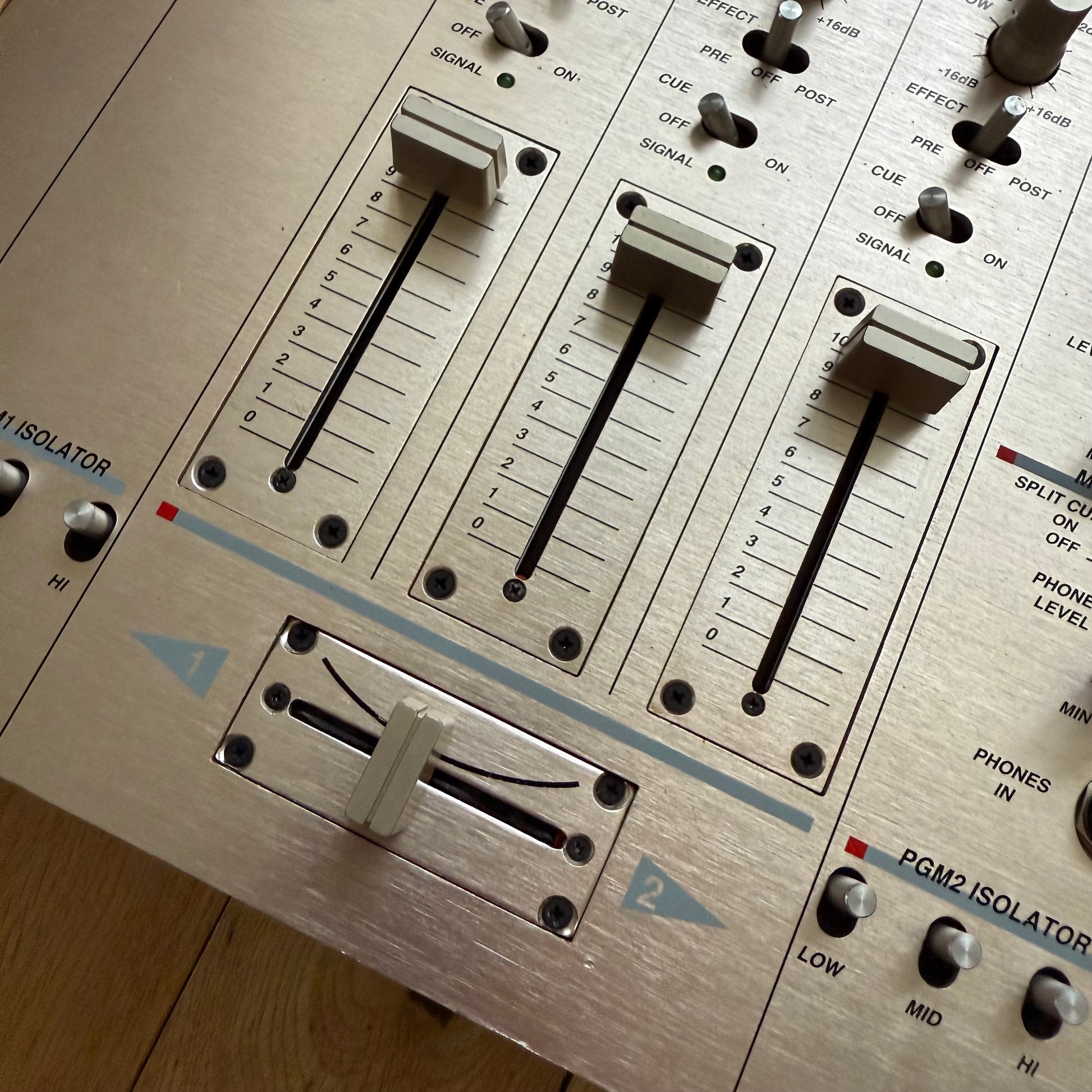 All channels and pots work smoothly. The RCA’s are all intact and the mixer has been thoroughly tested to ensure perfect operation. All the input switches, isolators and cue switches have been dismantled and cleaned to remove any carbon build up.) It features an incredibly low noise floor and the combination of EQs and isolators make this a fantastic analogue mixer.